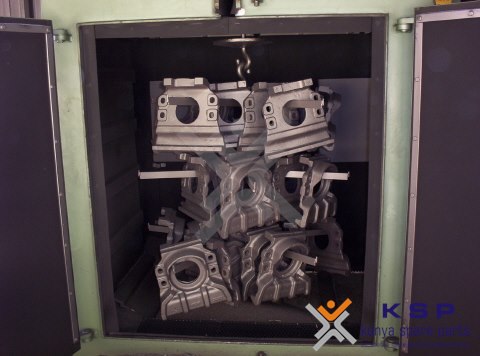 For surface cleaning and obtain best casting surface  we are using a Chamber Type Shot Blasting machine.